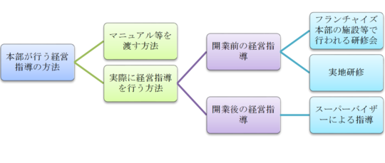 2つ目は、実際に経営指導(研修会の開催、実地研修、スーパーバイザーによるアドバイスなど)を行うことにより経営ノウハウを教える方法です。